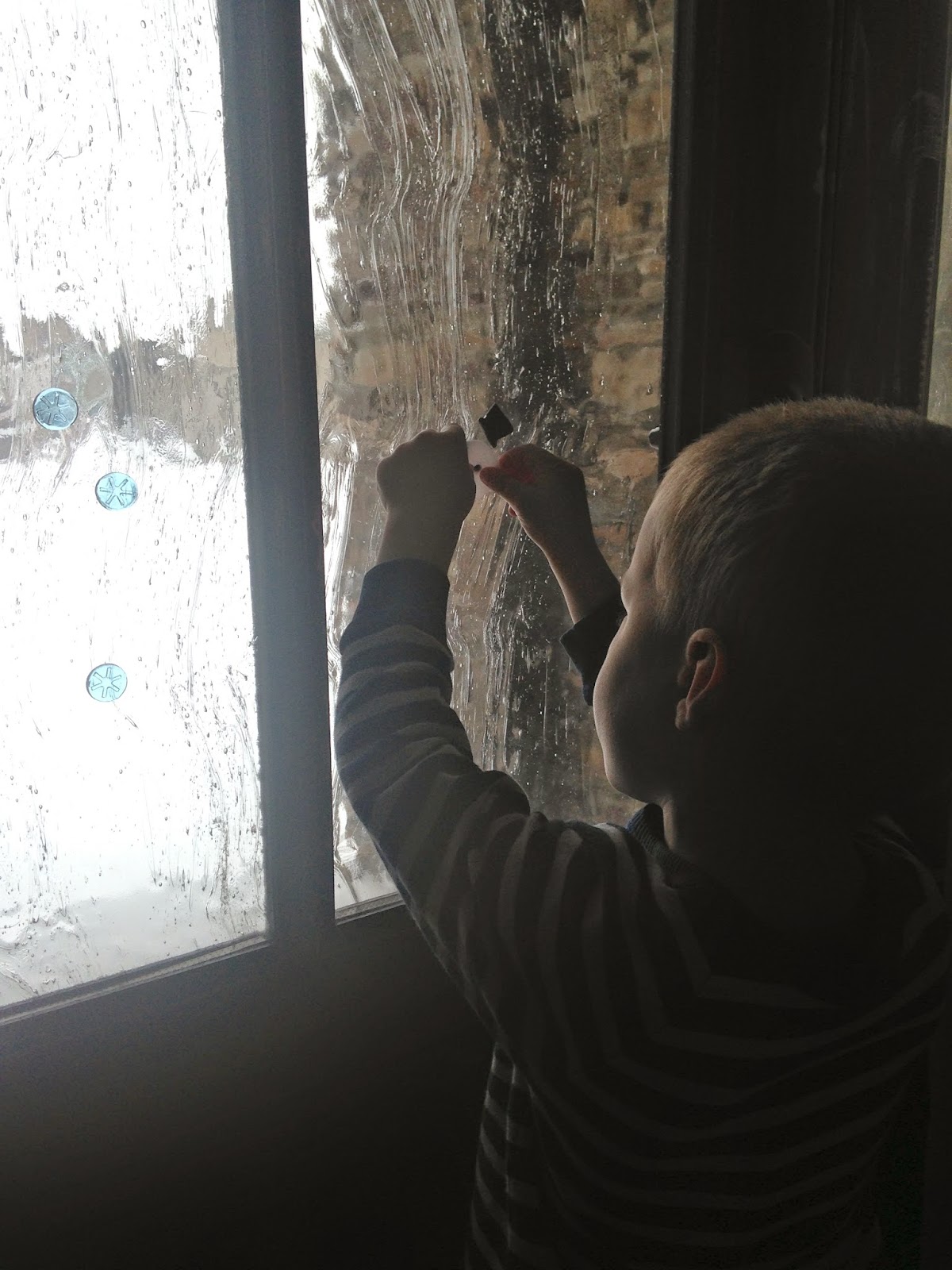 Then the next morning, we got lots of new snow to shovel and play in. (Strange to think that our Yellowstone snowcoach adventure was cancelled for lack of snow!) I've mentioned before that Owen loves to snow shovel! His handiwork on the front walk made me laugh though. I guess a straight shot is too boring!