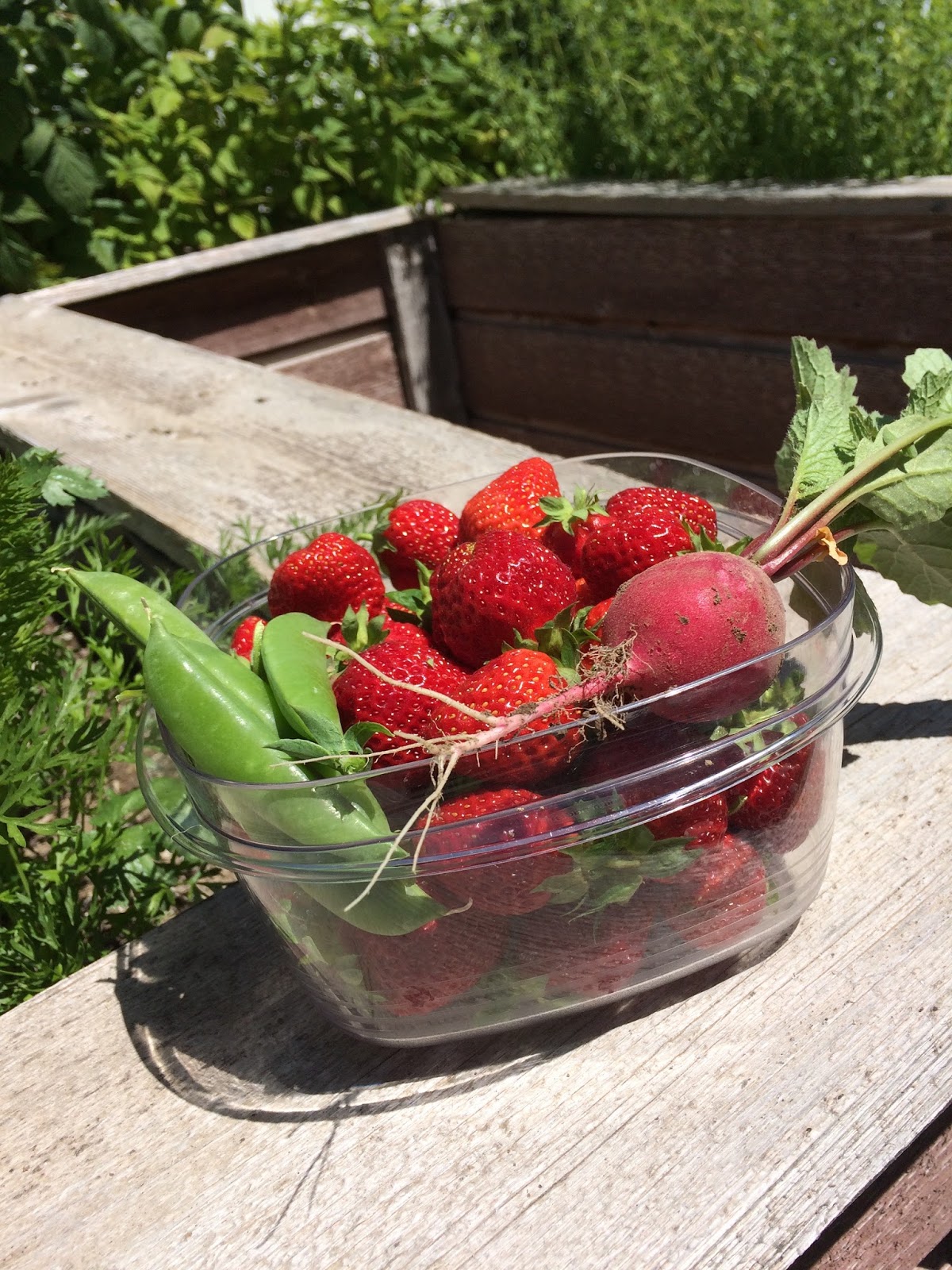 And on a side note, our garden is producing again! Lots of arugula, sugar snap peas, radishes, spinach, oregano, parsley, and lettuce so far. Oh, and we are up to our ears in strawberries, which we love! So far we've made several batches of strawberry freezer jam, frozen whole berries, strawberry poke cake, strawberry watermelon popsicles, and of course tons of plain ones! I have my eyes on some strawberry lemonade and strawberry muffins next. I feel a little like Forrest Gump...