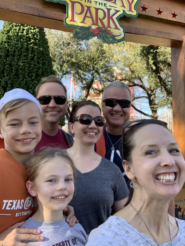 The kids get two weeks + off for winter break, so we took a few days off the week between Christmas and New Years to get a long stretch (with company holidays) off with them. To get a change of scenery and break out from our same old routines, we went to visit Uncle Ken and Aunt Chantelle in Weatherford, outside of DFW. Unfortunately, their girls are out of the house and working now, so we did not get to see them. We took it easy the first night, and the boys drove into Dallas the next day for the First Responder Bowl. I asked them to take a picture, so here it is: